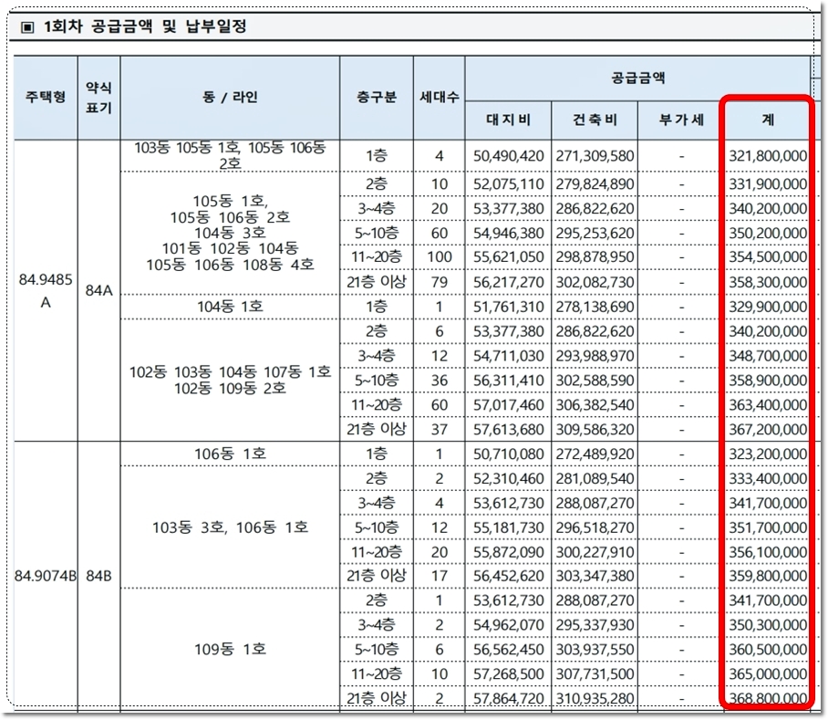 ※ 자세한 동별, 타입별, 호수별, 층별 분양가는 위에 올려드린 분양가 사진을 참고하시기 바랍니다.